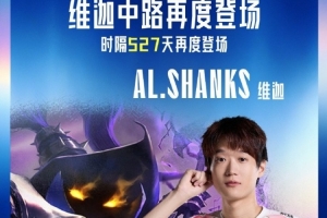 体育资讯9月20日讯 2025年9月20日,Shanks选手选出维迦中路,此为中路维迦时隔527天再度登场,上一次在中路位置被选用,是在2024LPL春季赛BLG vs TES时的BLG.Knight 选手。