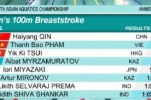 体育资讯9月30日讯 亚洲游泳锦标赛男子100米蛙泳决赛,覃海洋以59.07创赛会纪录的成绩夺冠。