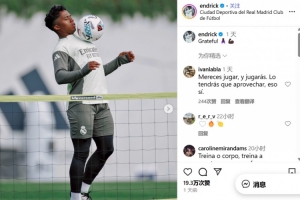 这种性格和沉稳的态度,他也在社交媒体上展现了出来。当许多队友正在各自的国家队中集训时,恩德里克留在马德里训练。他在自己的Instagram账号上发布了一组身穿皇马训练服的照片,并配文:“感恩”