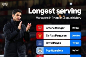 英超历史执教一家俱乐部时间排名: