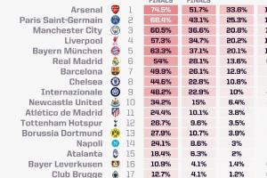 1、阿森纳 19.78%