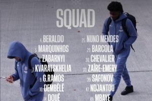 巴黎客战洛里昂大名单:登贝莱领衔锋线,马尔基尼奥斯坐镇后防