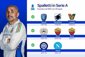 经验丰富!尤文图斯是斯帕莱蒂执教的第8支意甲球队,罗马二进宫