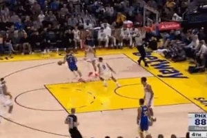 略显尴尬!库里弧顶单打出手三分空气球直接飞出界外