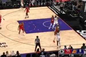 丝滑!布克拜佛晃过阿祖 杀入内线歪着身子上篮打进2+1