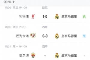 漫长客场!皇马六连客前两场1平1负无进球,直到下月才回伯纳乌