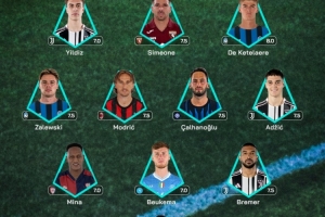中场:扎莱夫斯基(亚特兰大)、莫德里奇(AC米兰)、恰尔汗奥卢(国际米兰)、阿季奇(尤文图斯)
