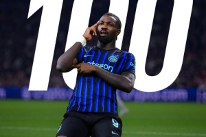 本场比赛小图拉姆梅开二度,这也是他代表国米各项赛事出场第100次里程碑之战,他已经为球队贡献38球24助攻。