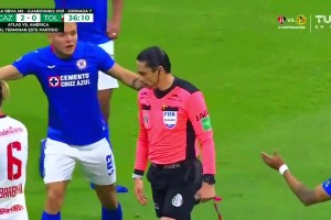 丹索解围时踩到迪涅脚踝部位,裁判未判罚犯规,VAR未介入