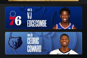 前三无弗拉格!官方新秀榜:埃奇库姆第一 科沃德&哈珀紧随其后