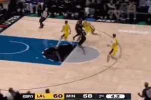 艾顿单打戈贝尔突破完全被罩住 无奈跳起传球直接失误出界