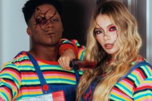 恩德里克与妻子晒万圣节cos,扮演鬼娃回魂恐怖公仔