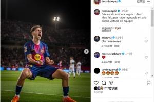 助攻双响!费尔明社媒晒激情庆祝照片:这就是前进的方向